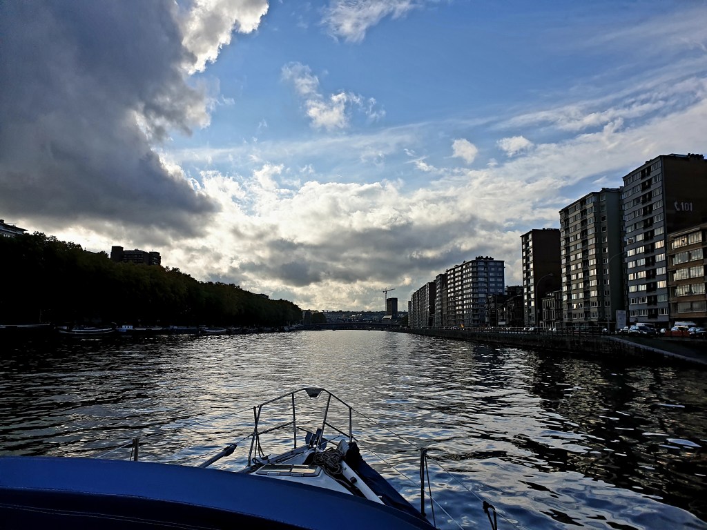 In Maastricht (Niederlande, nahe Belgien) versuchte ich mehrere Tage lang einen Coronatest zu bekommen. Vergeblich, wo ich hinkam und nach einem Test fragte, wich man zurück. Jeder dachte ich hätte Symptome. Nichts zu machen. Es gab zwar ein Riesencoronatestzentrum, aber es war zu. Nach zwei Tagen druckte ich mir im Hotel Einreisedokumente für Belgien aus und fuhr einfach ohne Test los. An der ersten belgischen Schleuse fragte ich ob ich hochgehen solle wegen der Formalitäten. Im tiefsten wallonisch wurde mir gesagt ‚c’est bon pour une fois‘ (das lasse ich nochmal durchgehen, im Unterton war deutlich ein Lachen zu hören). Ich war wieder zurück in meiner Kindheit, und fühlte mich wieder irgendwie zu Hause, denn ich bin ja in Brüssel aufgewachsen. Und dieses „C’est bon pour une fois“ hatte ich an der Schule und bei so vielen anderen Gelegenheiten gehört, dass nun wieder alles so war wie in der Kindheit. In Belgien gings sehr problemlos voran, man konnte an vielen Stellen anlegen oder einkaufen. Der Schiffsverkehr wurde immer geringer und ich war wegen der Jahreszeit weit und breit das einzige kleine Boot unterwegs. Die Pandemie spielte sich irgendwo anders ab, glaubte man. Auch die in Internetblogs gefürchtete Wasserschutzpolizei (haben Sie einen Zweitmotor an Bord? Ja, ich habe 2 Paddel für den Notfall. C‘ est bon pour une fois) liess sich nicht blicken. In Liège sah ich die dann mal beim Kartenspielen. Gehalten habe ich ein paar Tage in Liège, mitten in der Stadt. Wollte den Liegeplatz zahlen, aber alle meinten dass der Hafenmeister wegen Corona Angst hätte und zu Hause sei. So sass ich fest im Hafen, weil ich nicht den Zahlencode für die Tür hatte. Natürlich wurde mir augenzwinkernd der Code verraten und ich konnte Stella Artois und Eclairs besorgen. Fuhr dann weiter, bezahlen war nicht möglich, keiner ging ans Telefon. C’est bon pour une fois.