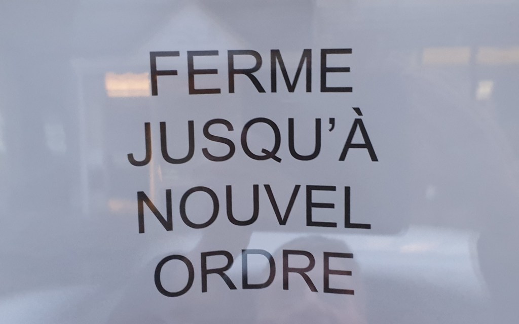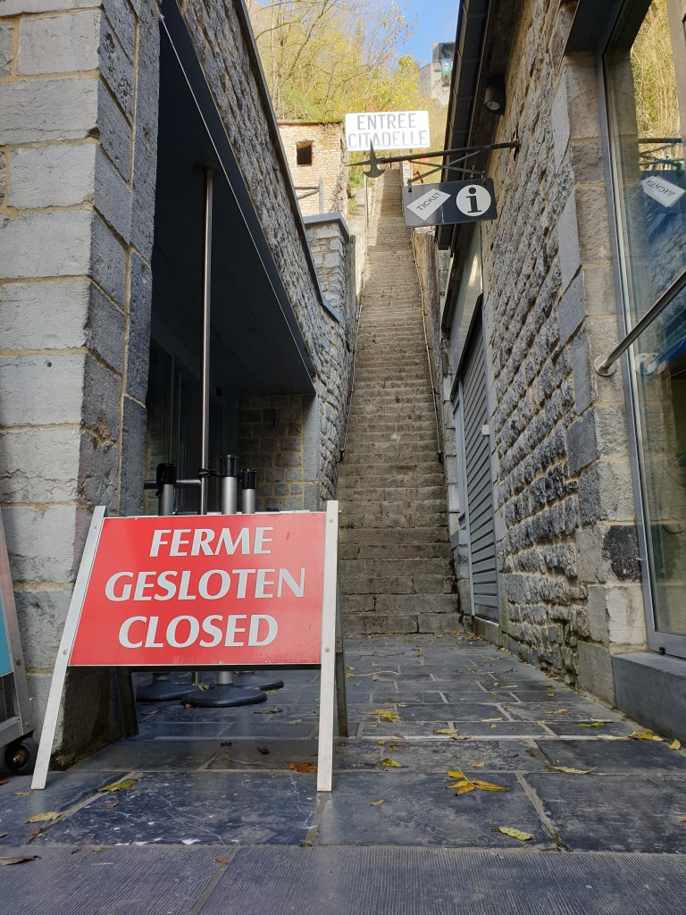 eines der vielen Hinweisschilder zur Ladenschliessung in Dinant