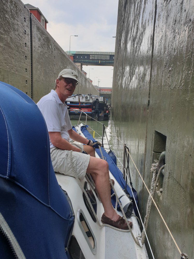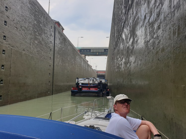 Danach kamen wieder ein Überholer und ein Entgegenkommer. Diesmal wollte ich nicht mehr ausweichen, konnte es einfach nicht. So wechselte ich kurz vor dem Überholer die Seite und liess ihn mit niedriger Drehzahl passieren, während der Entgegenkommer immer näher kam, und ich zurückwechseln konnte. Der Entgegenkommer brüllte mich auch gleich von seinem Fahrerhaus aus an, obwohl ich eigentlich alles gut im Griff hatte. Bei späteren Begegnungen dieser Art habe ich – wenn möglich – manchmal in Wendebecken oder Hafeneinfahrten das Fahrwasser verlassen um mich in Sicherheit zu bringen. Zu dieser Zeit hatte ich noch keinen SRC-Funkschein. Inzwischen hätte ich vorab versucht mich abzusprechen. Was hat ein Frachter davon wenn er 5 Minuten Zeit verliert?